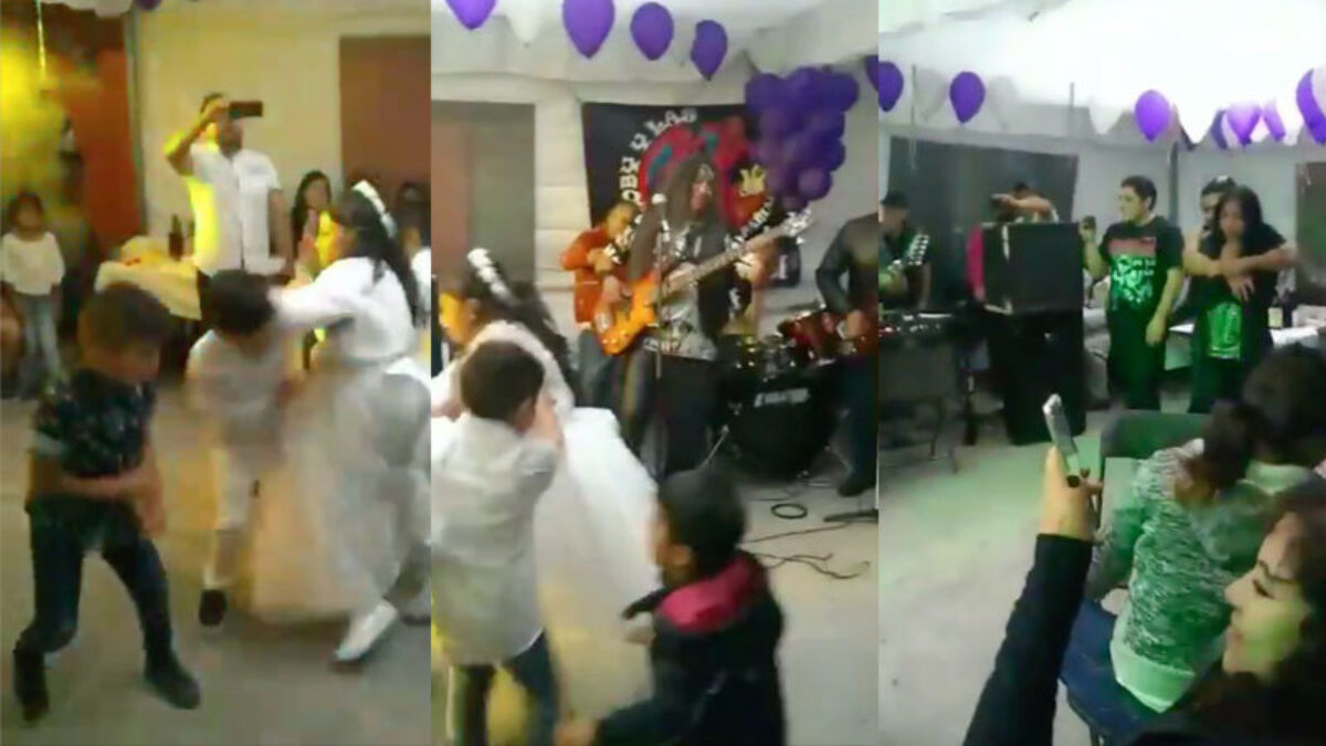 Tsjah, het is niet de meest gepaste plek of tijd, maar als je ouders dan toch een punkband voor je communiefeestje hebben geregeld... MOSHPIT!