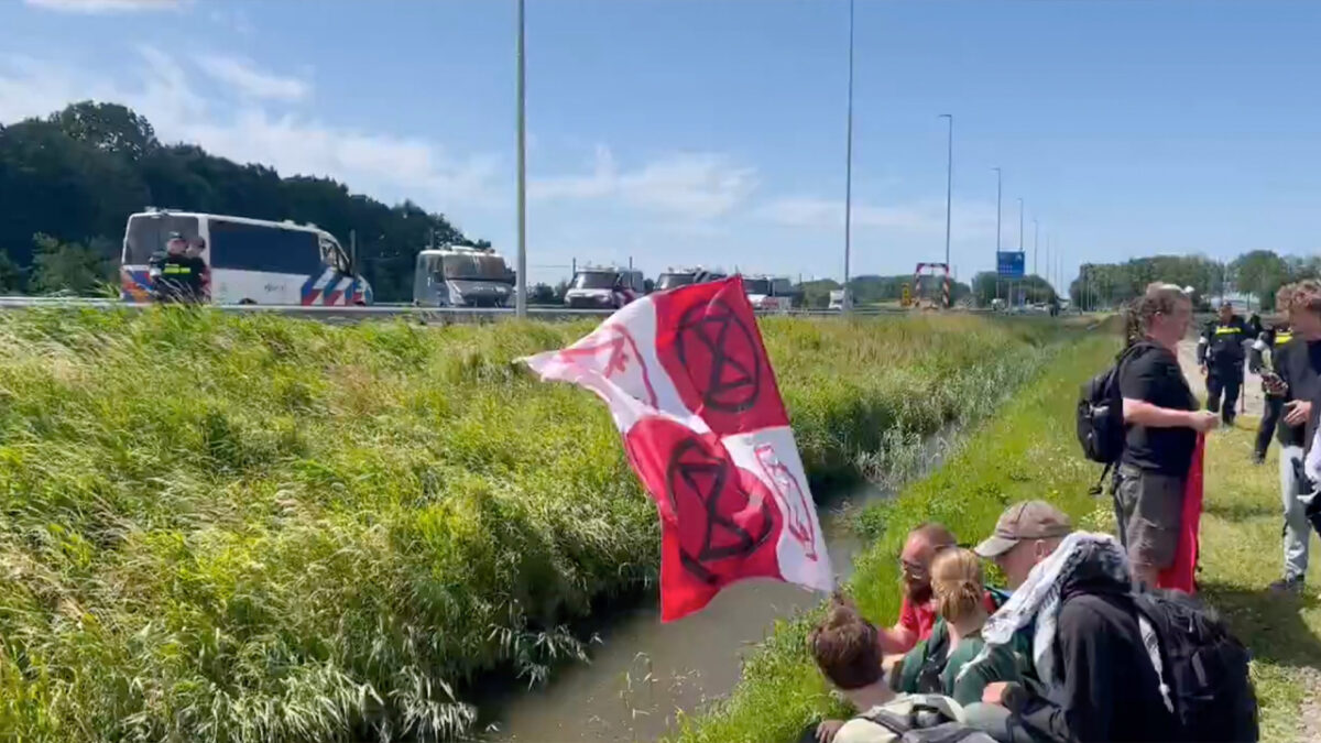 De politie heeft maandagochtend de plannen van Extinction Rebellion om de A44 bij Abbenes te blokkeren, flink in de wielen gereden. De activisten wilden hun vaste prik herhalen, maar strandden deze keer in een weiland naast de snelweg.