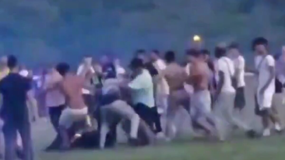 Op beelden is te zien hoe drie agenten de vermoedelijke dader overmeesteren, maar het loopt snel uit de hand als een groep jongeren zich ermee bemoeit. Ze werken de agenten tegen de grond en delen rake trappen en klappen uit; één kerel zwaait naar verluidt zelfs met een metalen staaf.