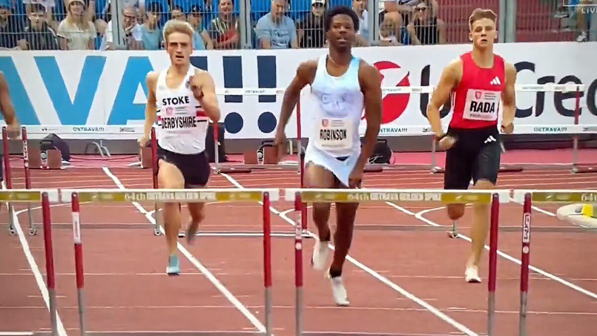 Chris Robinson deed z’n naam eer aan tijdens de Golden Spike in Tsjechië. De 24-jarige Amerikaanse hordeloper liep de 400 meter hurdles niet alleen op volle snelheid, maar liet ook het een en ander zien wat niet voor het publiek bedoeld was. Tijdens de race ging begaf z'n broekje het en kreeg de wereld net teveel Robinson dan gepland.