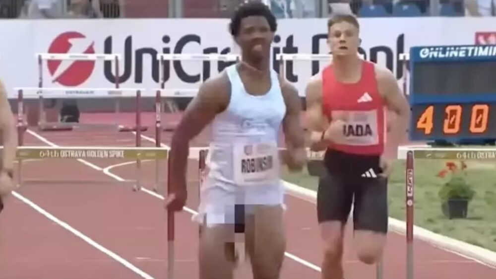 Chris Robinson deed z’n naam eer aan tijdens de Golden Spike in Tsjechië. De 24-jarige Amerikaanse hordeloper liep de 400 meter hurdles niet alleen op volle snelheid, maar liet ook het een en ander zien wat niet voor het publiek bedoeld was. Tijdens de race ging begaf z'n broekje het en kreeg de wereld net teveel Robinson dan gepland.