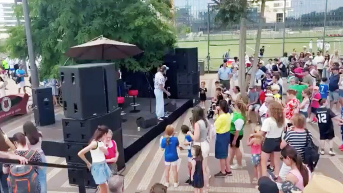 Waarom zo’n poster überhaupt reden is om weglopend je publiek te laten staan, blijft wat vaag. Maar Douwe had er geen trek in. Misschien dacht hij dat hij op Glastonbury stond in plaats van een sportfeestje voor families.