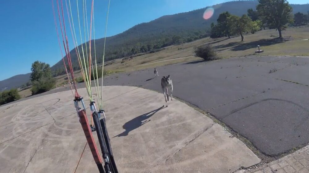 Skydiver krijgt te maken met een bende kangoeroes Dieren