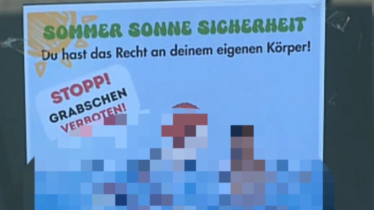 Een poster die bewustwording moet creëren onder zwembadgangers in Duitsland, lijkt niet het gewenste effect te hebben. Inmiddels gaat de afbeelding ook viraal in Nederland. Op de poster staat duidelijk: „Du hast das Recht an deinem eigenen Körper!“ (Je hebt het recht over je eigen lichaam!) en „STOPP! GRABSCHEM VERBOTEN!“ (STOP! Ongewenst aanraken verboden!). Er wordt benadrukt dat je niet zomaar andere badgasten mag bepotelen zonder toestemming.