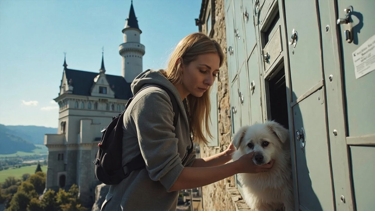 Het kasteel ligt vlakbij de Oostenrijkse grens en trekt massa’s toeristen en daar zitten blijkbaar ook types tussen die denken dat een hond in een locker hetzelfde is als een regenjas opbergen.