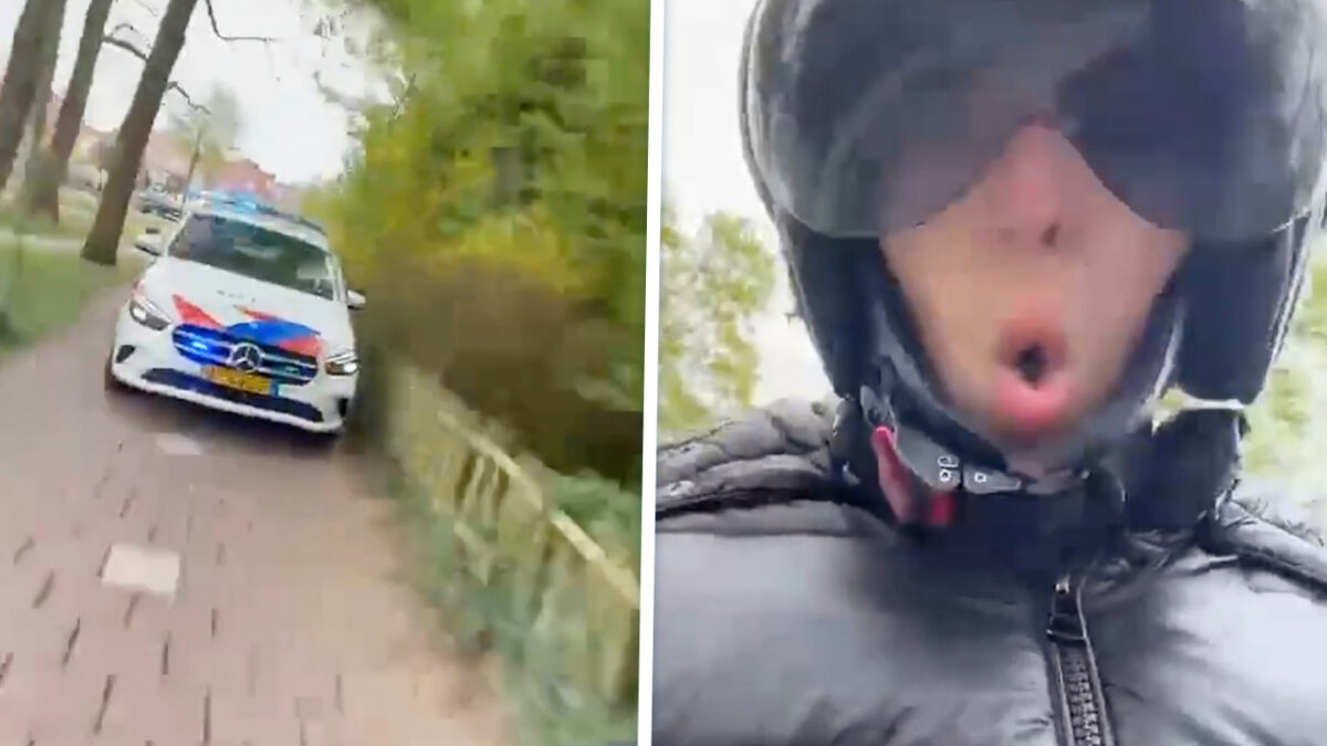 Scooterbink filmt rustig terwijl hij door politieauto wordt achtervolgd