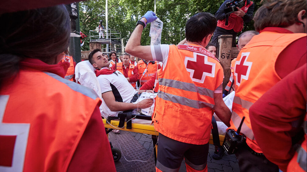 De man had blijkbaar minder geluk met zijn zigzag dan de rest van het deelnemersveld, want hij werd vol geraakt door een van de losgeslagen viervoeters. Hij ligt in stabiele toestand in het ziekenhuis, aldus Reuters.