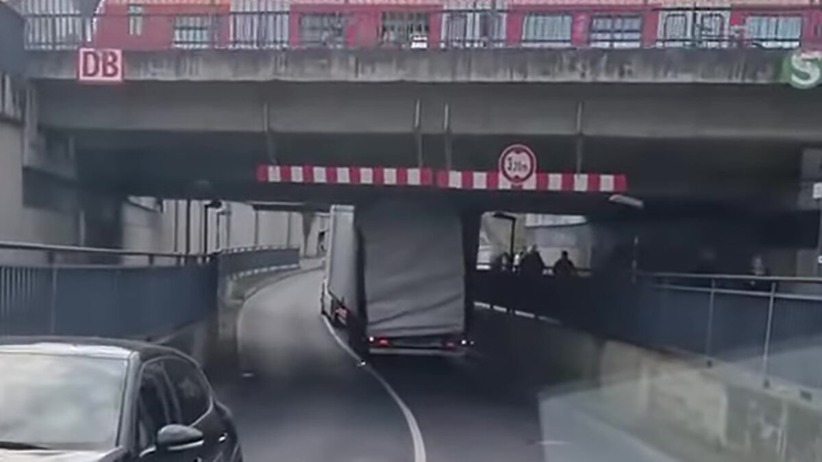 Sommige chauffeurs hebben haast, sommige schijt. Deze wegterrorist had schijthaast. Ondanks een paar overduidelijke waarschuwingsborden besloot hij z’n combinatie onder een te laag viaduct te persen. De cabine van de aanhanger ging open als een blikje tonijn, maar stoppen? Nee hoor, gewoon doorbeuken alsof er niks aan de hand is.