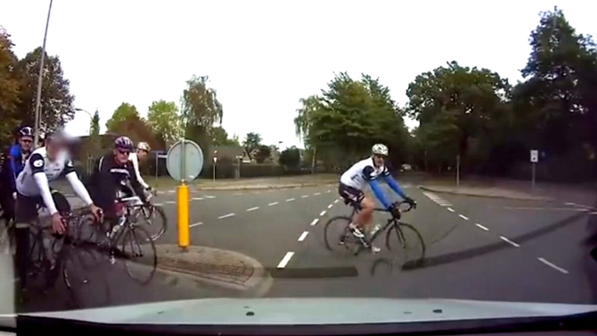 Een groepje Lycra-mannetjes op hun stalen carbon ros dacht deze keer dat voorrang iets is wat je gewoon claimt met genoeg zelfvertrouwen en een dure zonnebril. De automobilist dacht daar nét iets anders over.