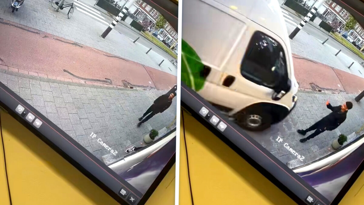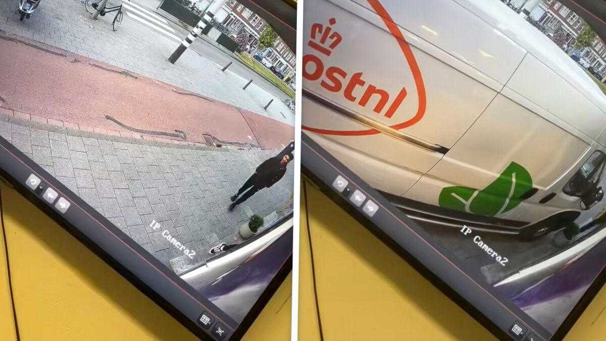 In Rotterdam is ook de stoep tegenwoordig geen veilige plek meer, vooral niet als je te maken krijgt met een PostNL-busje met tunnelvisie. Terwijl deze gast dacht een bocht te pakken, nam hij ook maar meteen een voetganger mee.