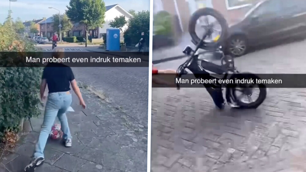 Fatbiker wil imponeren bij chickie en gaat vol op z'n plaat tijdens wheelie