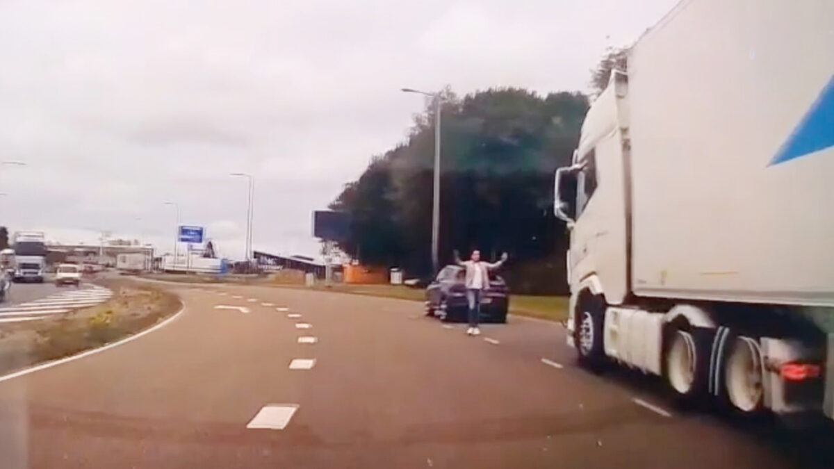Je hebt dom en je hebt *brake checken* voor een vrachtwagen alsof je geen gevaarte van 50 ton achter je hebt rijden. Eén Alfa-coureur in spe besloot onlangs even de held uit te hangen op de snelweg en testte z’n remmen pal voor een volle truck. Nee, dat was niet slim oliedom.