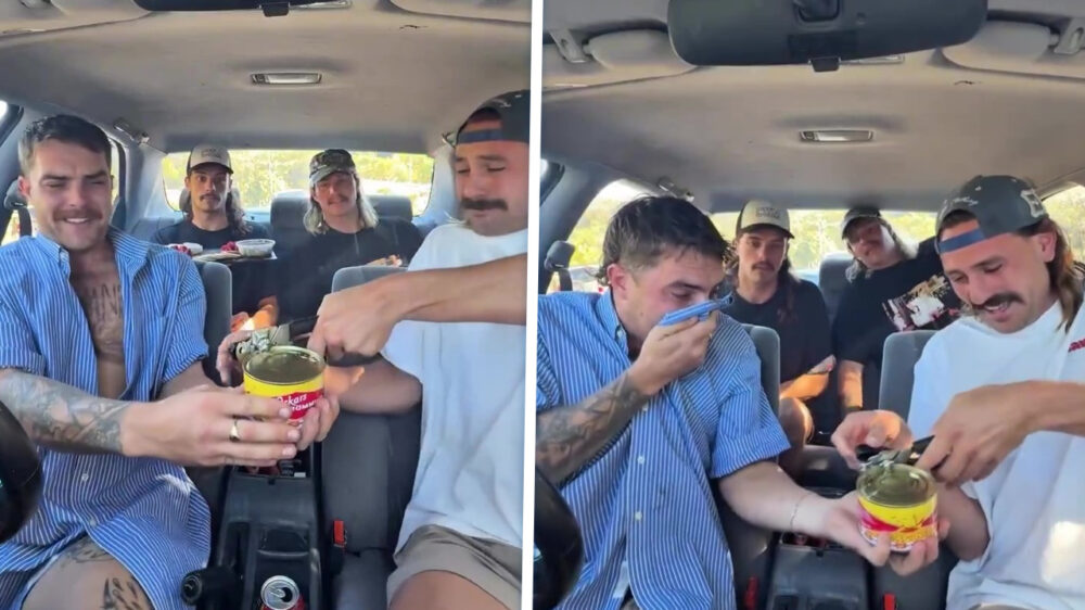 Vier helden down under dachten even een blikje surströmming open te trekken in de auto, want ja, wat is er leuker dan jezelf vrijwillig martelen met gefermenteerde rotvis in een afgesloten ruimte? Binnen drie seconden veranderde de wagen in een kotsfontein op wielen. Hopelijk is het een huurauto! 🤢
