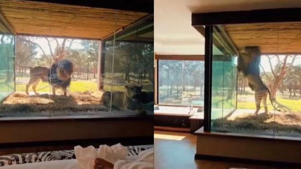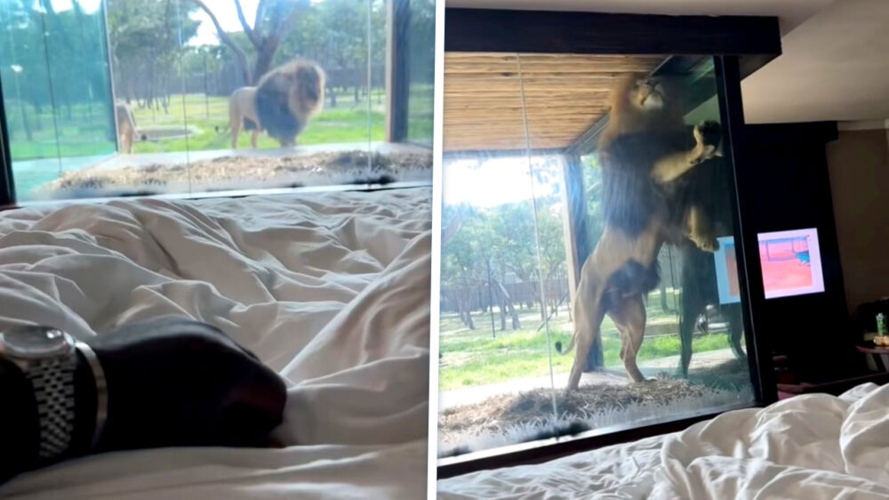 Onder de video regende het reacties. “De leeuw ziet er niet uit alsof hij daar wil slapen,” zei iemand. Een ander was juist enthousiast: “Oh yeah. I’d pay to do that. Would be a surreal experience.” Nou, als je van adrenaline in je ochtendroutine houdt dan zit je daar goed.