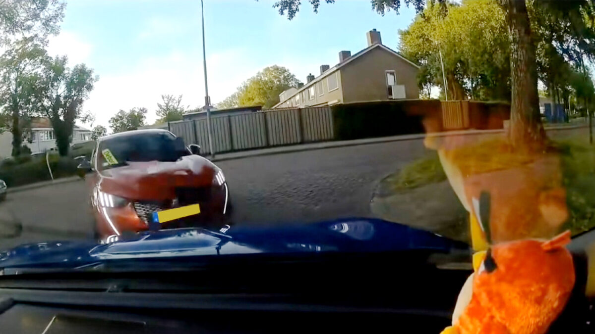 Deze kerel, vermoedelijk de vent van Deborah, dacht dat een haakse bocht prima te doen was met één hand aan het stuur en de andere op z’n Insta-feed. Resultaat: volle bak frontaal op een tegenligger. Het is bijna knap hoe veel domheid er in zo'n korte actie past.