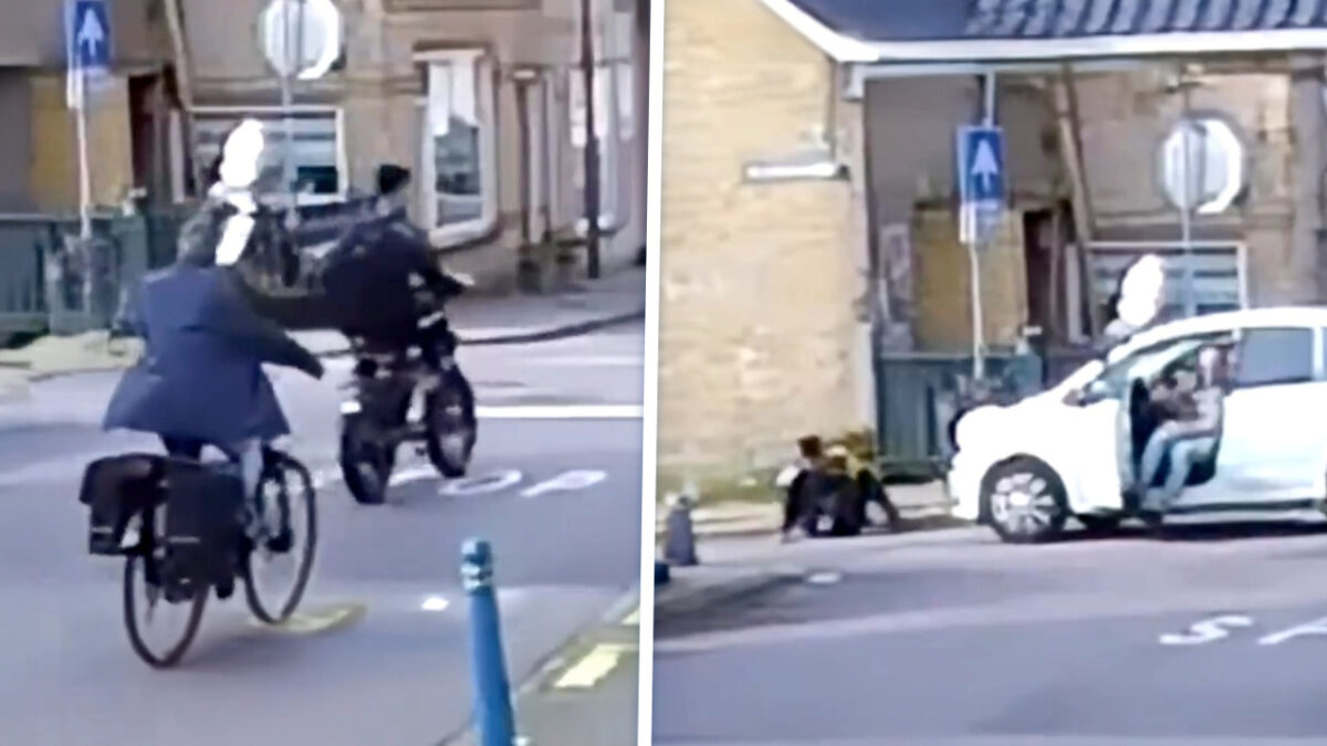 Fatbikers zijn over het algemeen best stoer en intimiderend, dat geven we toe. Maar soms geldt gewoon de wet van de sterkste. In dit geval dacht een fatbikeheld ongestraft de weg te kunnen kruisen, maar werd keihard op zijn plek gezet. Een passerende automobilist katapulteerde hem zo van zijn stalen ros: