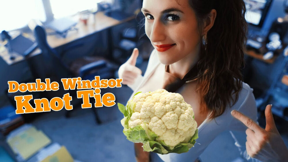 De altijd vrolijke Piper Blush laat ons zien hoe je een dubbele Windsor knoopt. We zijn haar reuze dankbaar.