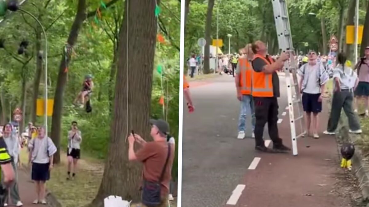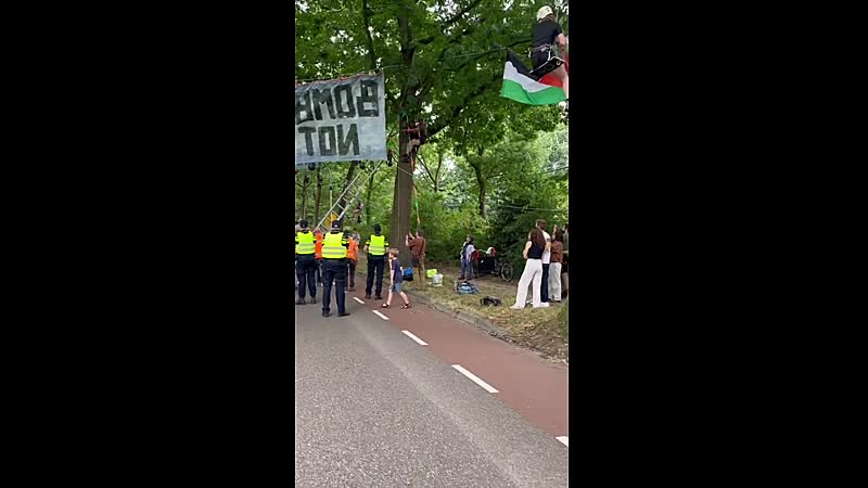De wandelaars van de Vierdaagse kregen er donderdag ongevraagd een ‘tegenliggende bermbom’ bij. Langs de route bij de Kwakkenbergweg in Nijmegen hingen activisten nepbommen en spandoeken rond uit protest tegen militarisering. Bomen werden beklommen, spandoeken uitgerold en de route moest zelfs even op pauze. De politie haalde de activisten uiteindelijk van hun uitkijkposten af.
