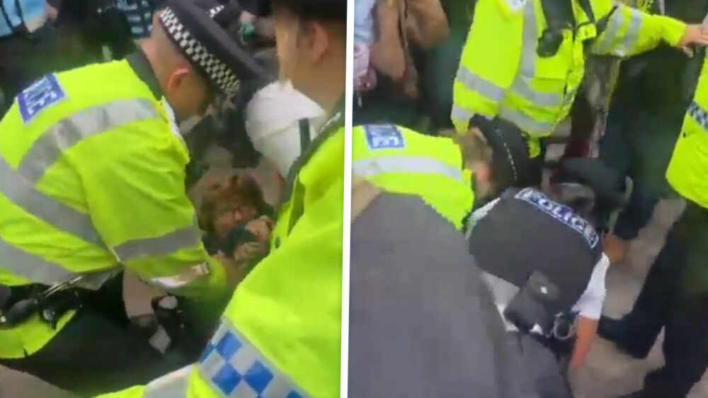 Oma met rollator opgepakt voor ‘terrorisme’ na steun aan Palestine Action