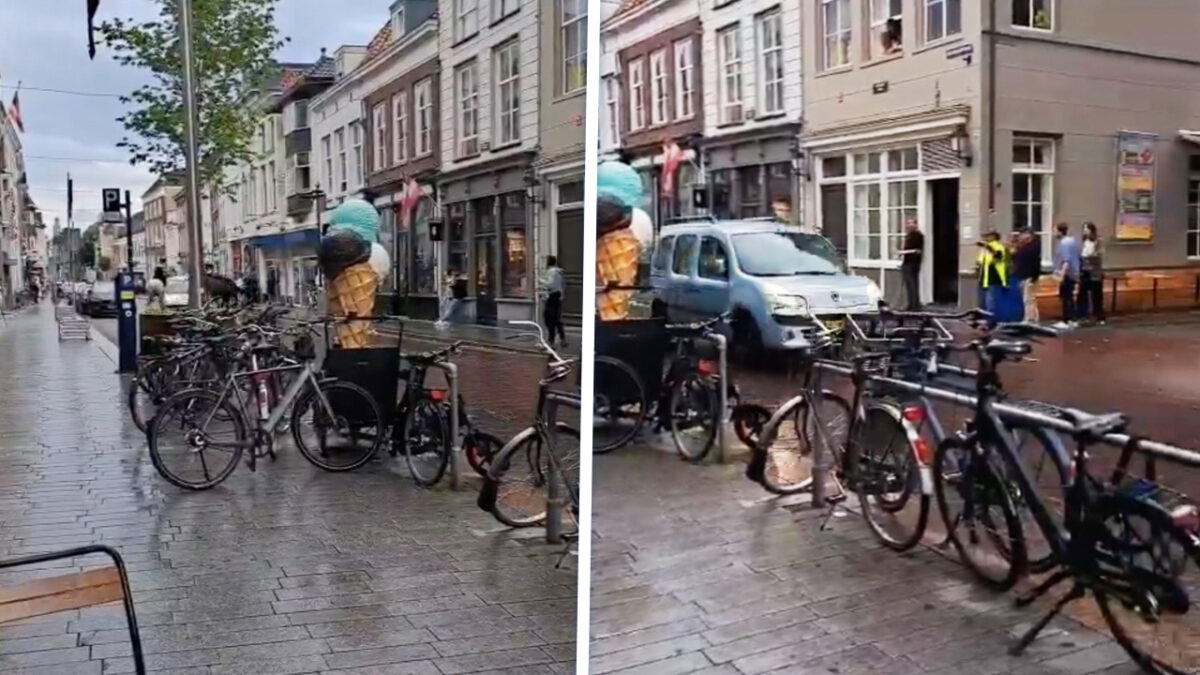 Idioot met bestelbusje rijdt in op twee politiepaarden in Den Bosch