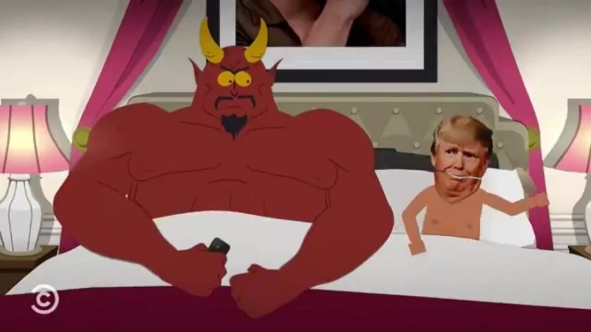 In een satirische scène wordt Trump afgebeeld in bed met Satan, waarbij Satan opmerkingen maakt over de lengte van Trumps geslachtsdeel. Daarnaast wordt verwezen naar de "Epstein-lijst".