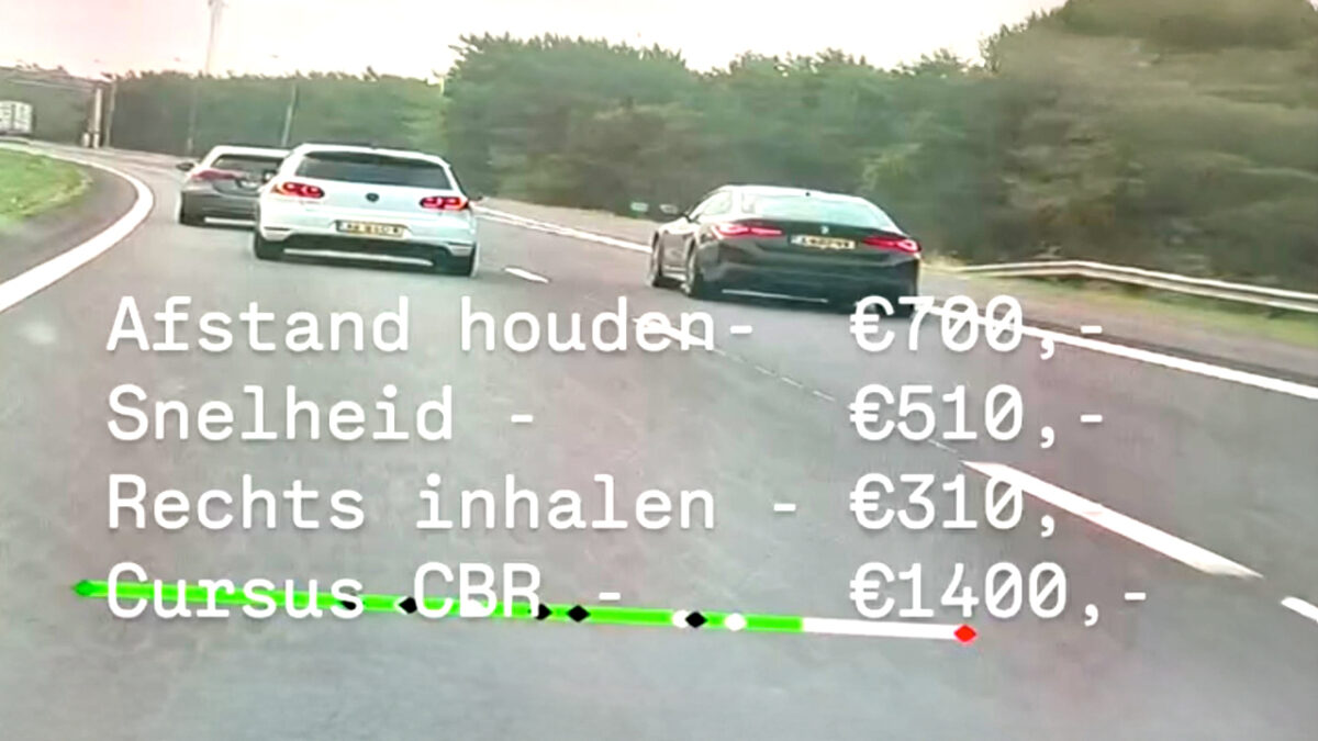 Voor het bumperkleven kreeg hij een boete van 700 euro. De snelheid leverde nog eens 510 euro op en zijn creatieve inhaalacties kostten hem 310 euro. Alsof dat nog niet genoeg pijn deed, heeft hij ook een uitnodiging op de mat voor een verplichte CBR-cursus, à 1400 euro. Even slikken dus: 2920 euro in totaal en z’n vlucht had hij waarschijnlijk alsnog niet gehaald.