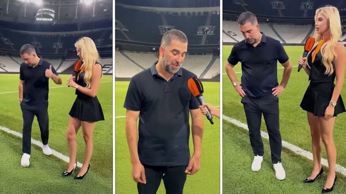 Sjachtar Donetsk-trainer Arda Turan probeerde krampachtig oogcontact te vermijden met de opvallend aanwezige verslaggeefster Daria Bondar Savina. De beelden, opgenomen na een wedstrijd en uitgezonden op de clubzender, leverden flinke reacties op via sociale media.