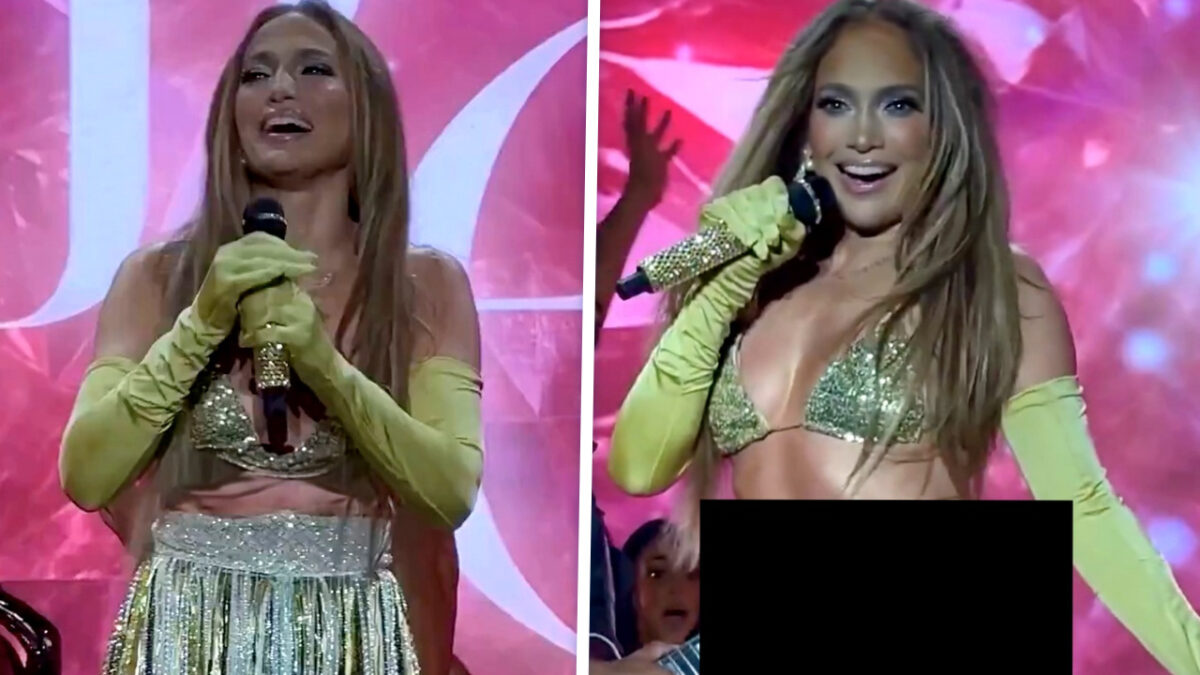 Ze liep net terug het podium op voor een ‘verjaardagsverrassing’ toen het misging. Een danser probeerde het kledingstuk nog snel te fixen, maar het kwaad was al geschied. Lopez, allerminst gechoqueerd, gooide haar armen omhoog en schreeuwde: “Ik sta hier in mijn ondergoed”