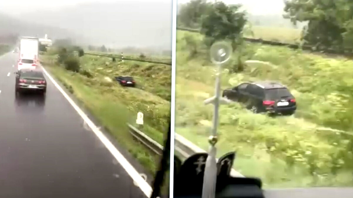 Je hebt files, je hebt Audi-rijders en dan heb je Audi-rijders met een Quattro en een ego zo breed als de vluchtstrook. Terwijl normale stervelingen netjes aanschuiven in de regen, besluit deze held zonder cape om de berm maar even tot privéstrook te bombarderen. Vierwielaandrijving, nul hersencellen en een natte onderbroek verder rolt ‘ie als een verdwaalde tractor door de modder. Top gedaan, bermkampioen!