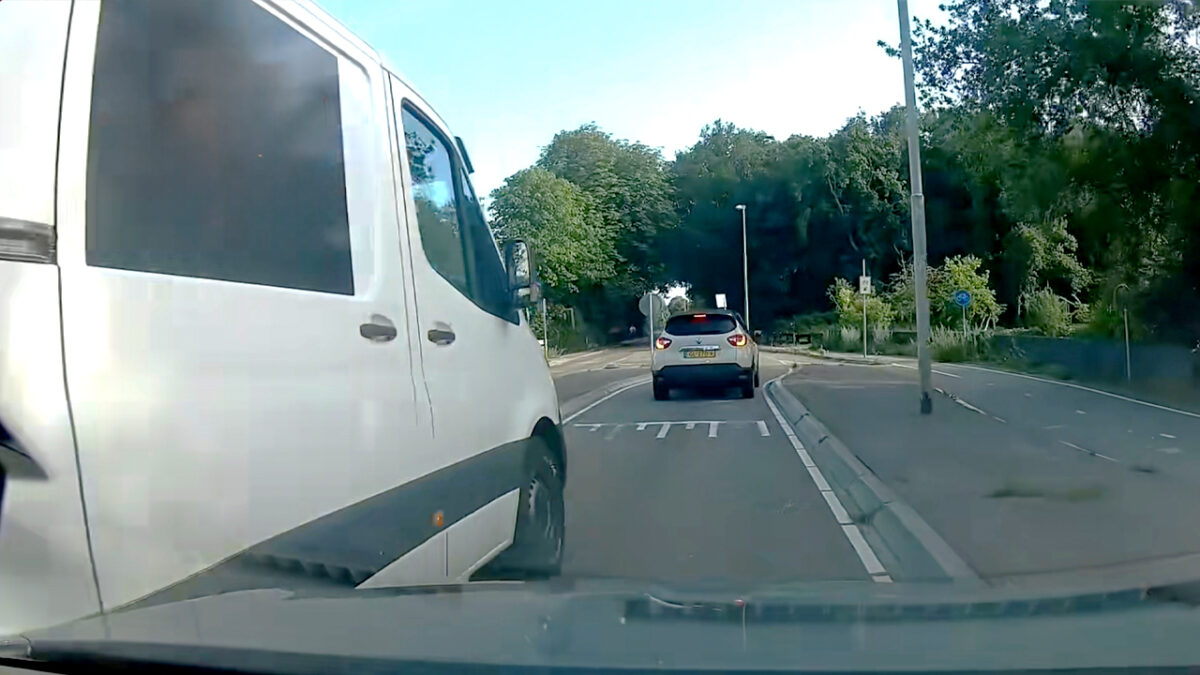 De bestuurder van deze Sprinter had écht geen zin om achteraan te sluiten en besloot dan maar even de verkeersregels, de doorgetrokken streep én z’n fatsoen te negeren. Met een klein beetje lef duwt hij zich vlak voor de wegversmalling tussen twee auto's in en zo maakt hij toch weer 2 seconden reistijd goed op weg naar huis.