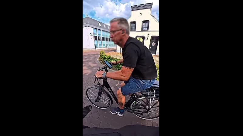 Op z’n Puch-fietsje, gewapend met z'n fietscomputer en het zelfvertrouwen van een fileleider op de A2, besluit deze e-biker doodleuk een auto van rechts te negeren alsof hij de burgemeester van de weg is.