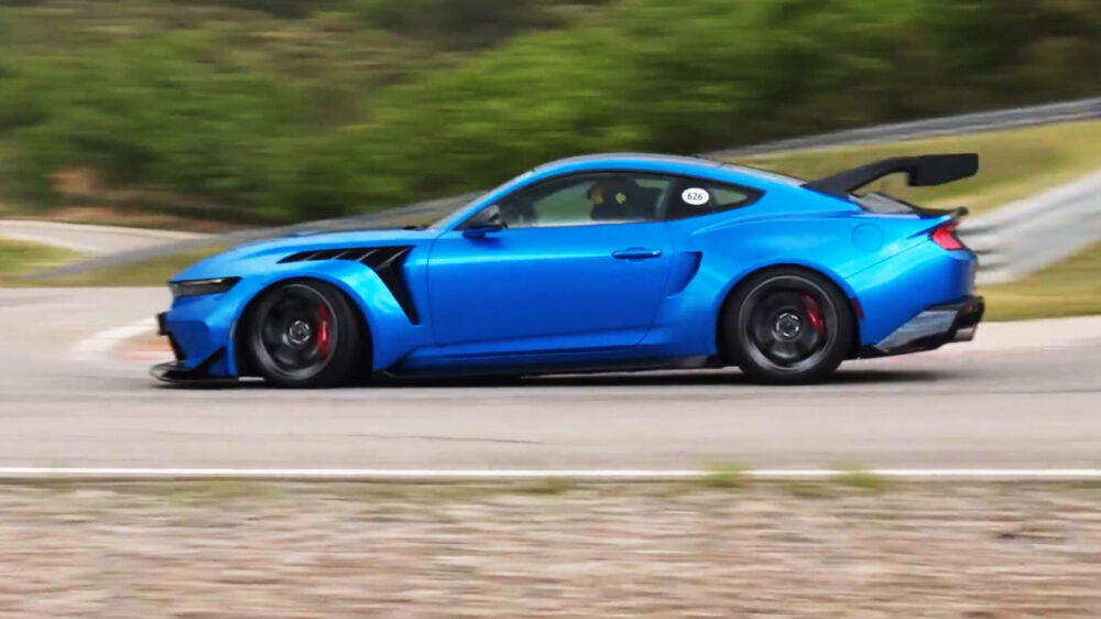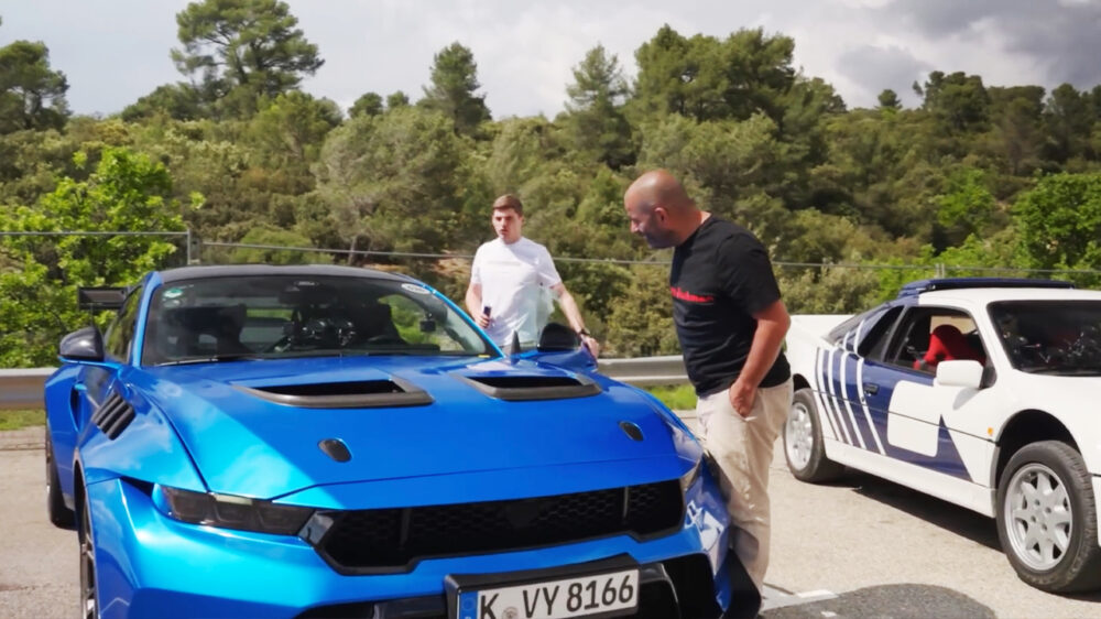Daarna volgt het echte vuurwerk: de Mustang GTD komt van stal en Max laat zien waarom hij niet alleen op het F1-circuit kan vlammen.