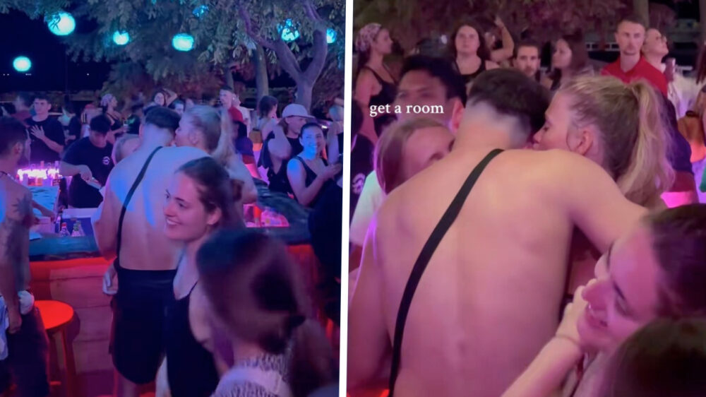 Vakantiegevoel kan veel doen met een mens, maar deze kerel lijkt de jackpot te hebben geraakt. Terwijl de rest van het publiek nog braaf staat te genieten van de muziek, is onze 'vakantieman' druk bezig met een tête-à-trois die je normaal alleen in bepaalde films ziet. Eén ding is zeker: deze nacht eindigt niet met alleen een kater...