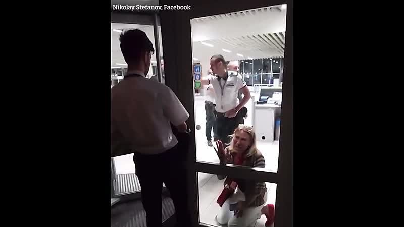 Het tafereel eindigde in een gênante smeekbede op haar knieën richting medepassagiers.