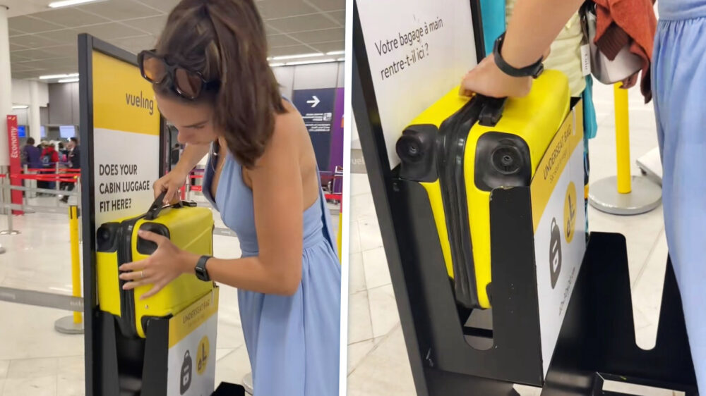 Op de luchthaven van Parijs dacht een medewerker even Arina op haar plek te zetten. Haar gele koffer zou te groot zijn voor handbagage, maar Arina had andere plannen.