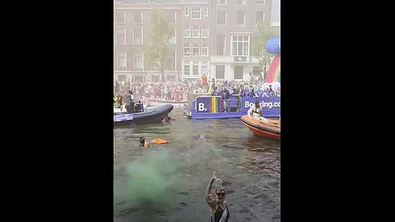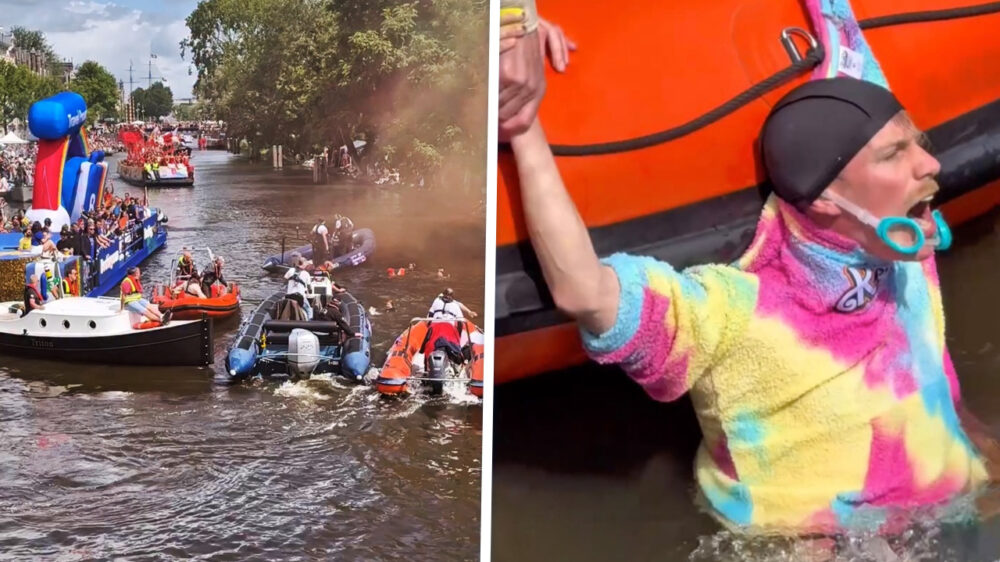 XR-activisten blokkeren boot van Booking tijdens Amsterdam Pride 2025