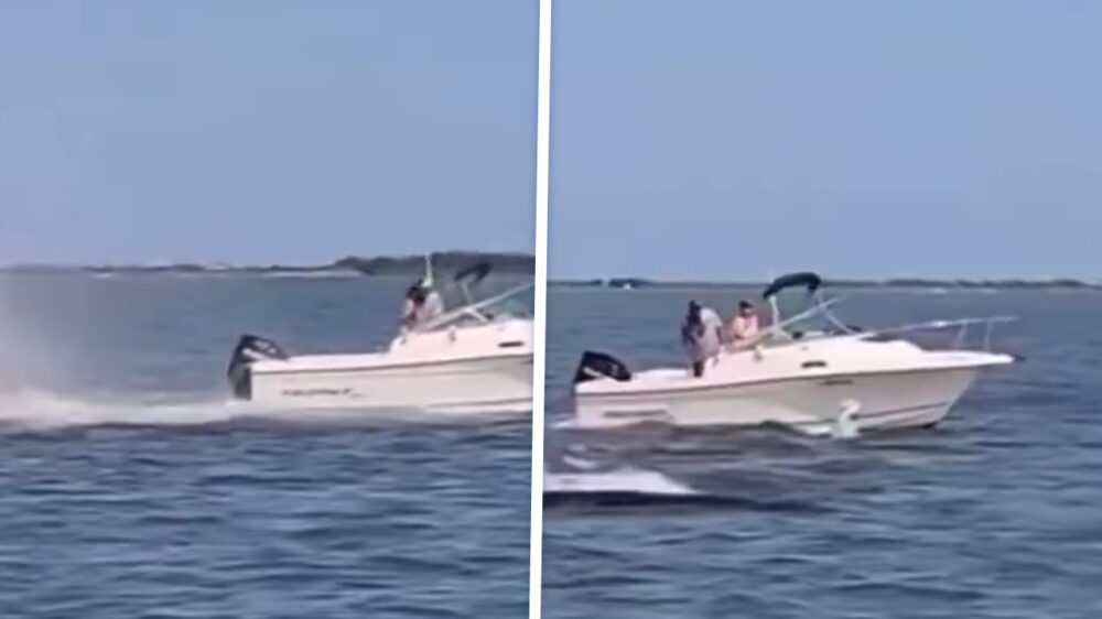 Een walvis is dit weekend dood teruggevonden in ondiep water bij de kust van New Jersey, na een 'aanvaring' met een motorboot. De klap was zo lomp dat de boot bijna omsloeg en iemand overboord viel. Beelden op sociale media laten een schommelende boot zien, een spartelende walvis en iemand die watertrappend probeert te overleven naast de chaos.
