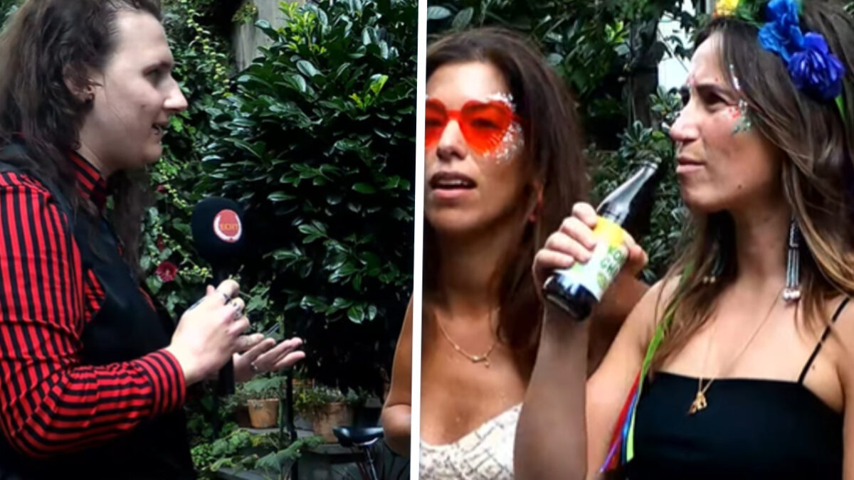 “Jullie zijn vandaag hier om te demonstreren voor de LHBTI-gemeenschap?” vraagt de verslaggever aan vier vrouwen, die elkaar licht verloren aankijken. De vrouwen zeggen dat ze de gemeenschap 'supporten', maar Pride niet per se zien als een demonstratie. Dan volgt een kruisverhoor: gaat dit vierkoppig, feestvierend kwaad dan wel op inclusieve partijen stemmen??? Ook na deze vraag volgt een ongemakkelijke stilte.