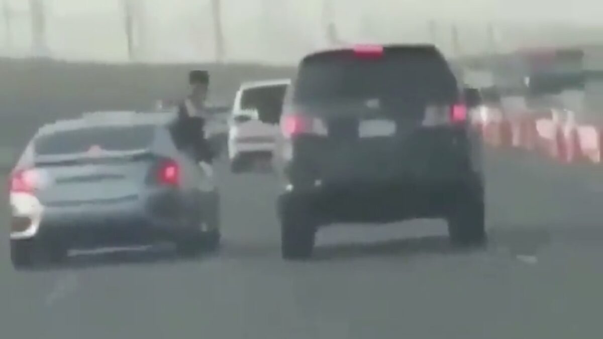Uit je auto hangen tijdens een road rage verloopt precies zoals je verwacht