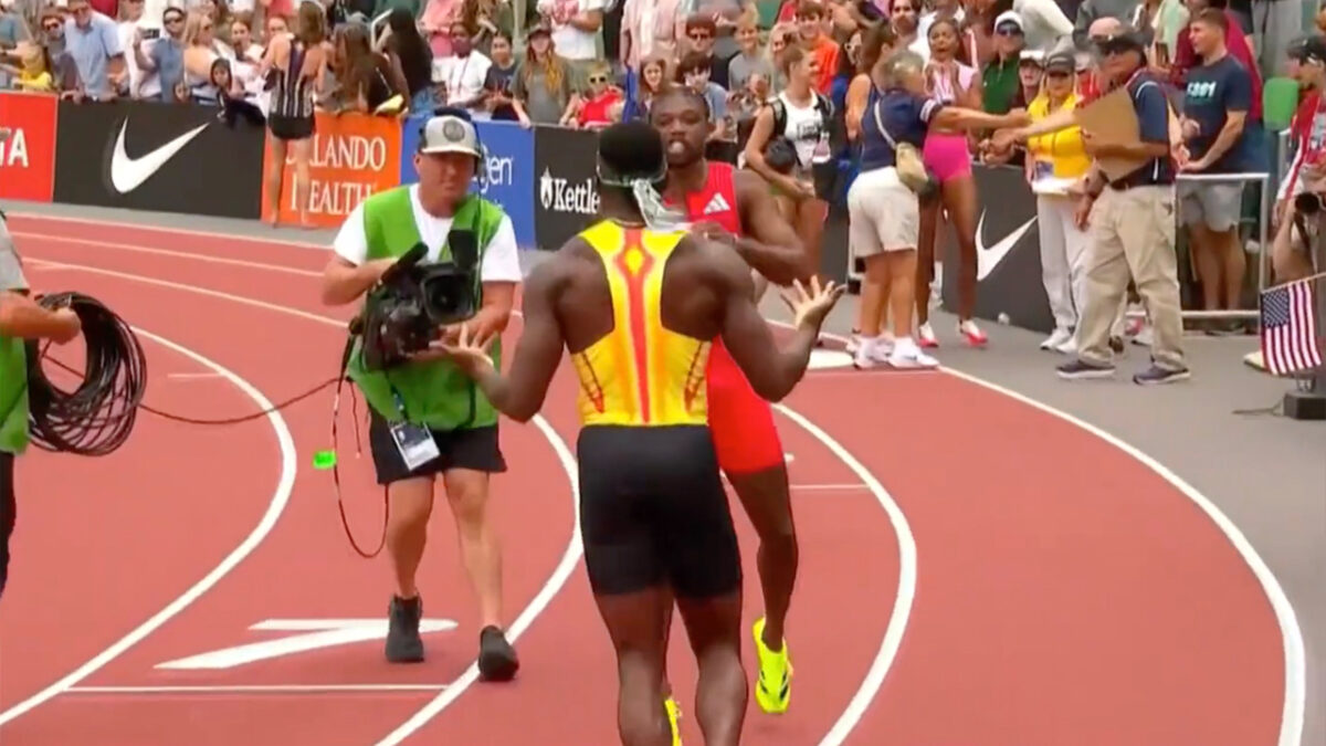 Noah Lyles irriteert tegenstander met staredown op de finishlijn