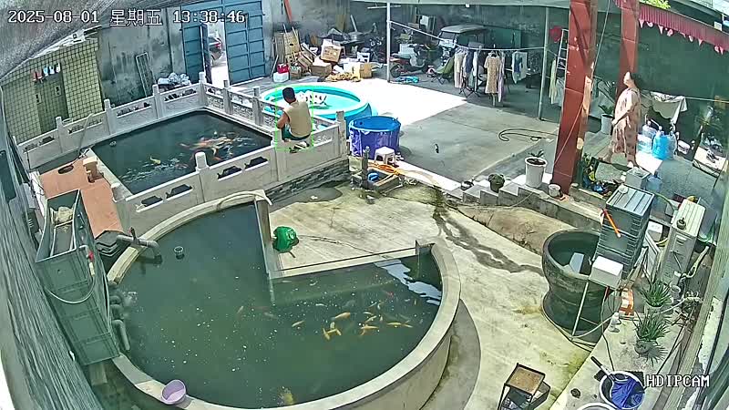 Als je dacht dat alleen de vissen nat werden in deze vijver, dan heb je het mis. Deze vrouw had er duidelijk schoon genoeg van dat haar vent meer aandacht gaf aan zijn koikarpers dan aan haar en de rest van de familie. En wat doe je dan? Juist; dan geef je hem een liefdevolle natrappende duw richting z’n glibberige vriendjes.