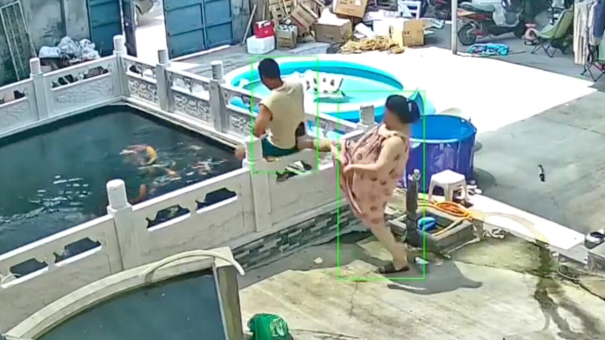 Als je dacht dat alleen de vissen nat werden in deze vijver, dan heb je het mis. Deze vrouw had er duidelijk schoon genoeg van dat haar vent meer aandacht gaf aan zijn koikarpers dan aan haar en de rest van de familie. En wat doe je dan? Juist; dan geef je hem een liefdevolle natrappende duw richting z’n glibberige vriendjes.