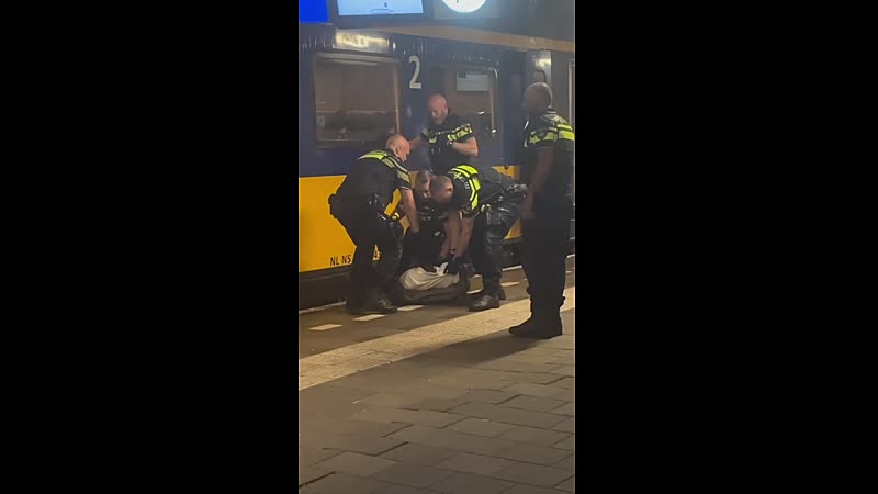 Op social media trekt een video van een arrestatie in de trein alle aandacht. Op de beelden is te zien hoe een man compleet doordraait en uiteindelijk door een heel arsenaal aan agenten uit het rijtuig wordt geknikkerd.
