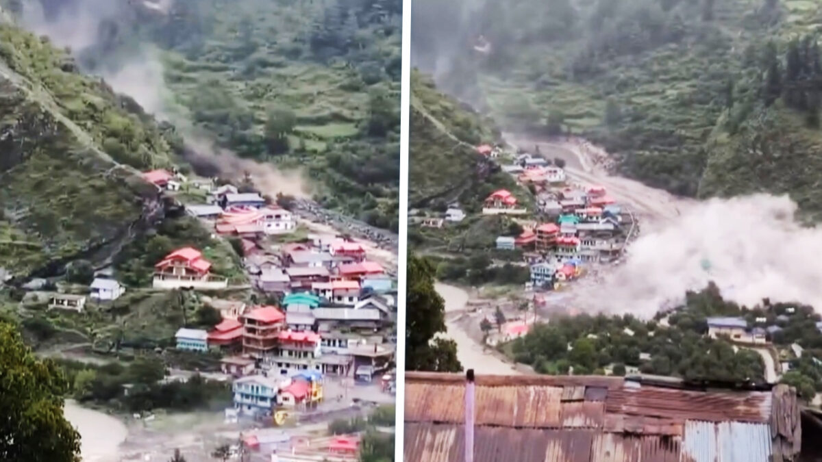 Een plotselinge 'cloudburst' heeft in het Indiase Uttarakhand het hele bergdorp Dharali compleet van de kaart geveegd. De stortvloed sleurde huizen, hotels en mensen mee. Beelden op social media tonen modder, bomen en puin die als een wildwaterbaan door het dorp razen. Lokale autoriteiten vrezen dat er nog mensen levend onder het puin liggen.