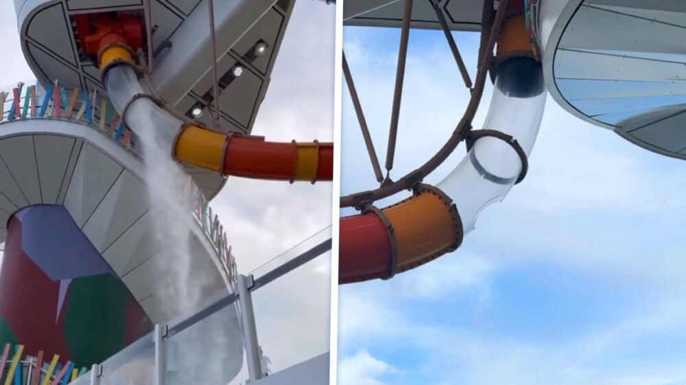 Op een schip van Royal Caribbean was het ff broekpoepen toen een acrylplaat van de glijbaan er geen zin meer in had. Een volwassen gast zat er op dat moment middenin en raakte gewond toen het glas brak. Geen lekkere combi, zo’n waterglijbaan op volle zee die ineens openklapt.