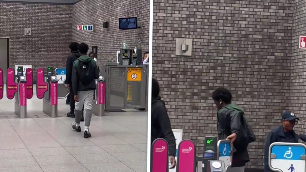 Op de video, gemaakt door forens Matt Stevens, is te zien hoe twee jonge mannen brutaal gebruikmaken van de brede toegangspoortjes, bedoeld voor mensen met rolstoelen, kinderwagens of zware bagage. Ze lopen rustig langs het aanwezige personeel, dat niet ingrijpt.