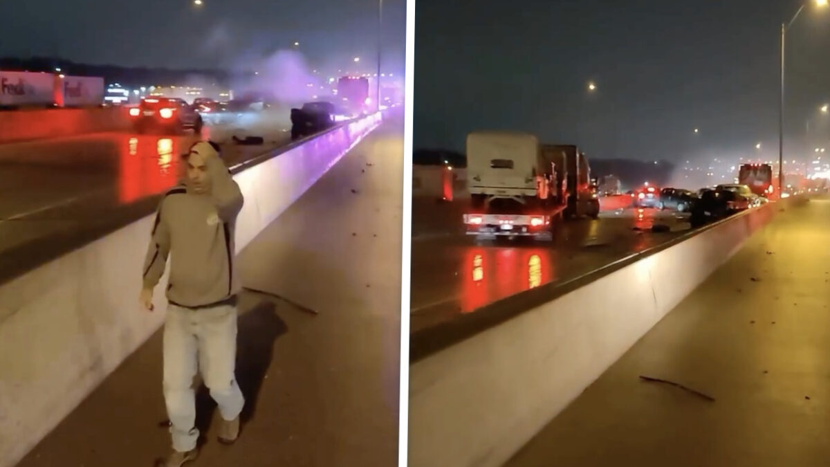 Bizarre kettingbotsing in Texas verandert snelweg in gigantische autosloop