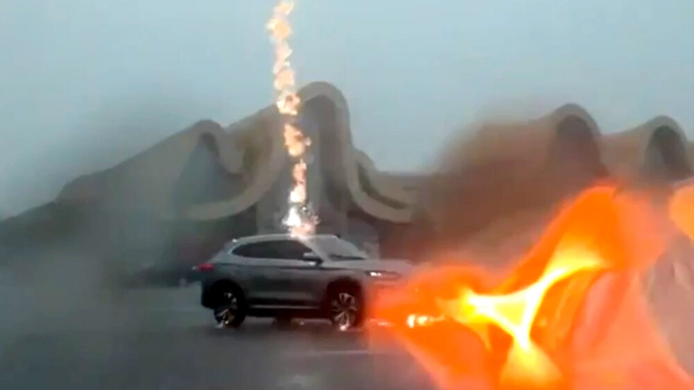 Auto in China 3x geraakt door bliksem, bestuurder stapt gewoon uit