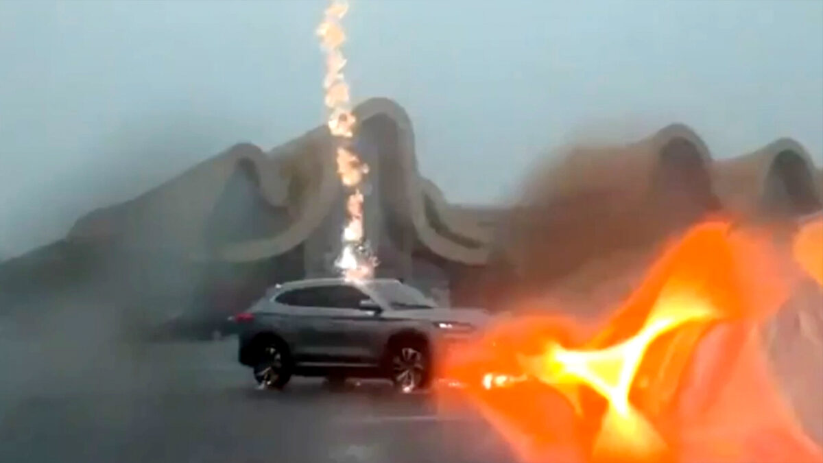In het Chinese Beihai kreeg een elektrische BYD Song Plus een gratis portie natuurgeweld. De auto werd afgelopen 6 augustus tijdens het rijden niet één, niet twee, maar drie keer achter elkaar geraakt door de bliksem.