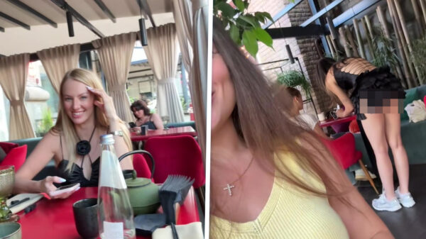 Het eten mag dan misschien gewoon goed zijn, maar in dit restaurant wordt er blijkbaar ook aan het ‘visuele’ deel gedacht. De serveerster in kwestie heeft namelijk een rokje aan dat zó kort is, dat je je afvraagt of het überhaupt nog stof kan heten. En ja hoor, zodra ze ook maar een beetje bukt, krijgen de gasten onbedoeld een extra gang voorgeschoteld. Bon appétit!